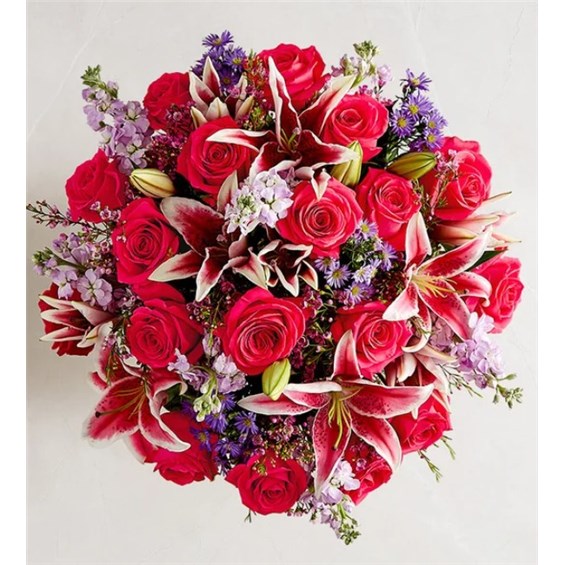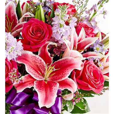 A gift means so much more when it comes from the heart. Our Valentine’s bouquet delivers on that sentiment, with radiant pink and purple blooms arranged in a glass vase. Finished with a purple satin ribbon, it’s a surprise that speaks volumes about how you feel.